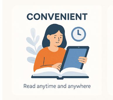 eBooks are available instantly online, giving you access to thousands of titles without needing to visit a store.